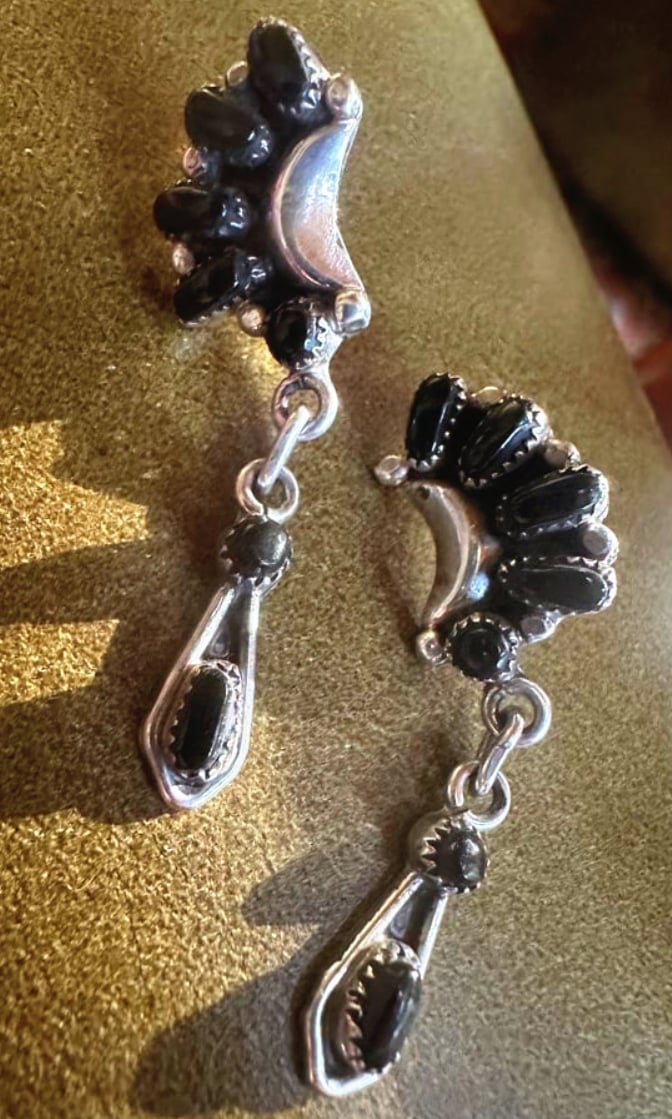 Bill and Lou Zuni onyx cluster earrings