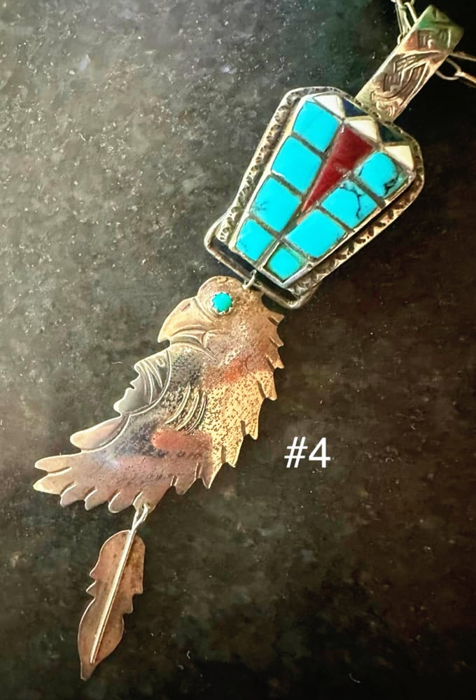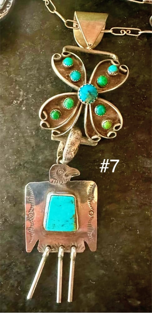 #7 Here- I used several "bits"- F. Begay T bird, vintage snake eye watch tip- artisan stamped loop and added a 8 mm bale- everything laser soldered- made 2 of this design- the other one lives in my personal collection 🤫- I love the rustic vibe- I layer mine with so many things- and it's great as a solo piece too.