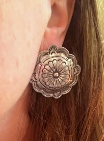 Native American Navajo Domed Stamp Work Repousse Sterling Silver Post Earring!